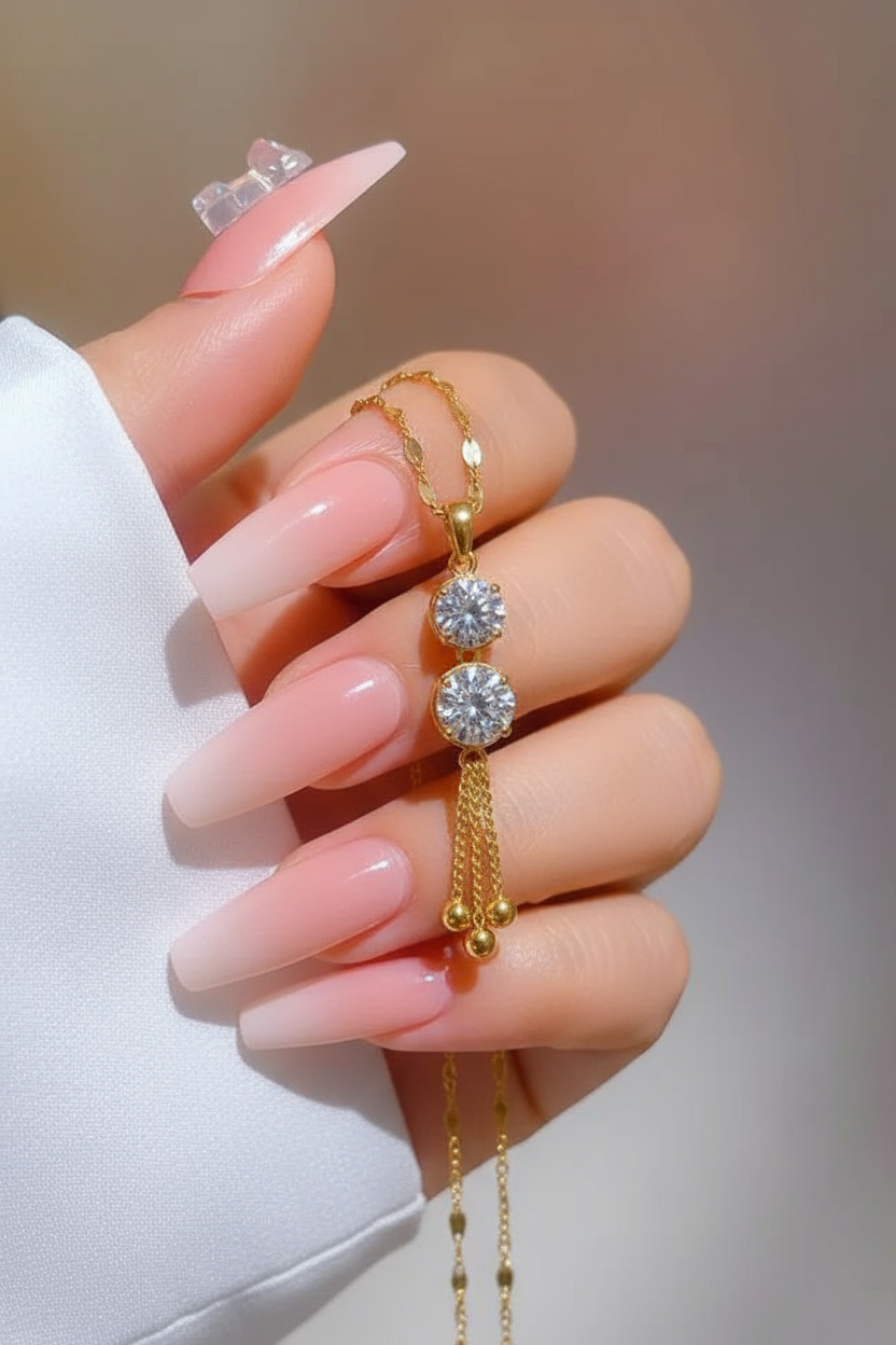 Classic Double Stone Tassel Pendant Necklace